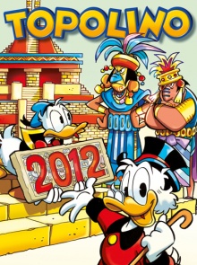 *L’ultimo numero di Topolino del 2011 (n. 2927) dedica la storia d’apertura alla “cataclismamania” (Zio Paperone e la profezia a ritroso), come la definisce lo sceneggiatore Fausto Vitaliano. Sempre informato ed abile non solo nel sintetizzare in una storia a fumetti – arricchita dal tratto di Giorgio Cavazzano – tutto quanto ruota attorno alla vicenda della “profezia Maya” sul 2012, Vitaliano riesce ad aggiungerci gli aspetti relativi all’ecosistema, al marketing dell’apocalisse e, naturalmente, al coinvolgimento degli alieni. Una vera e propria sintesi, una volta tanto allegra e divertente, delle teorie cospirazioniste ed extraterrestri legate al tema dell’apocalisse Maya.