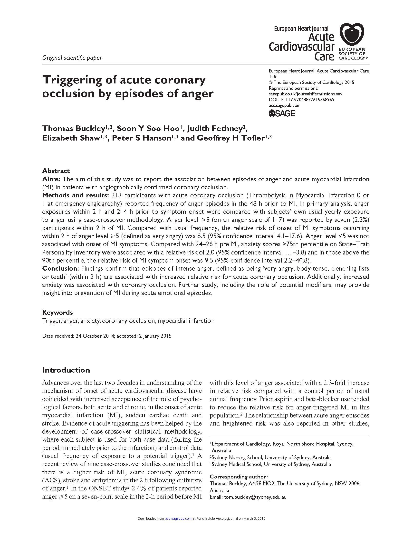Episodes of intense anger associated with high risk of heart attack within the next two hours